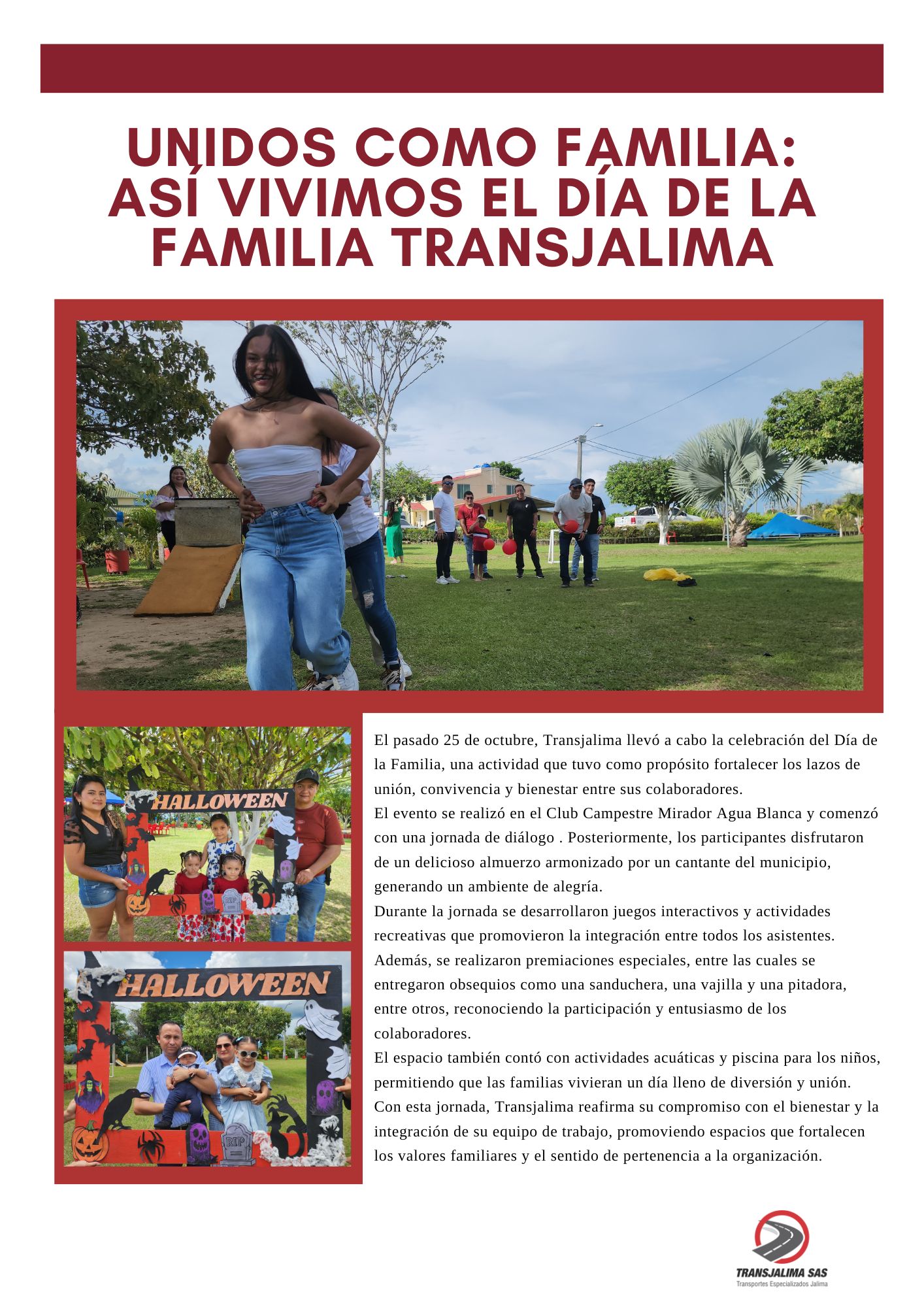 En esta sección encontrarás las últimas novedades de Transjalima, incluyendo eventos, campañas, actividades internas, logros y acciones que reflejan nuestro compromiso con la seguridad, el bienestar y el medio ambiente. Aquí compartimos los hechos más importantes que fortalecen nuestra comunidad y mantienen informados a nuestros colaboradores y aliados.